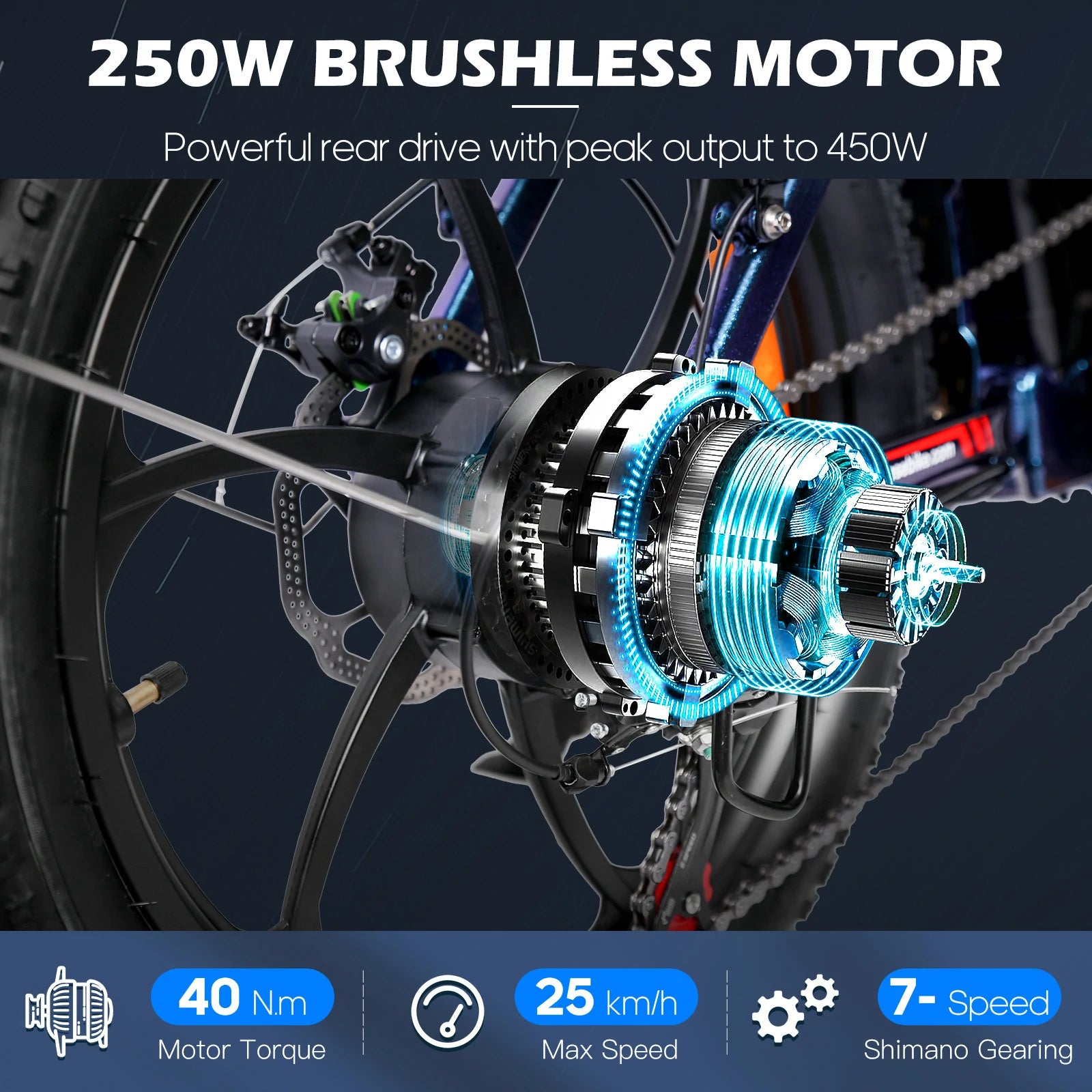 250W Motor | 36V 10Ah Battery | 25km/h Speed | 40-60km E-Range