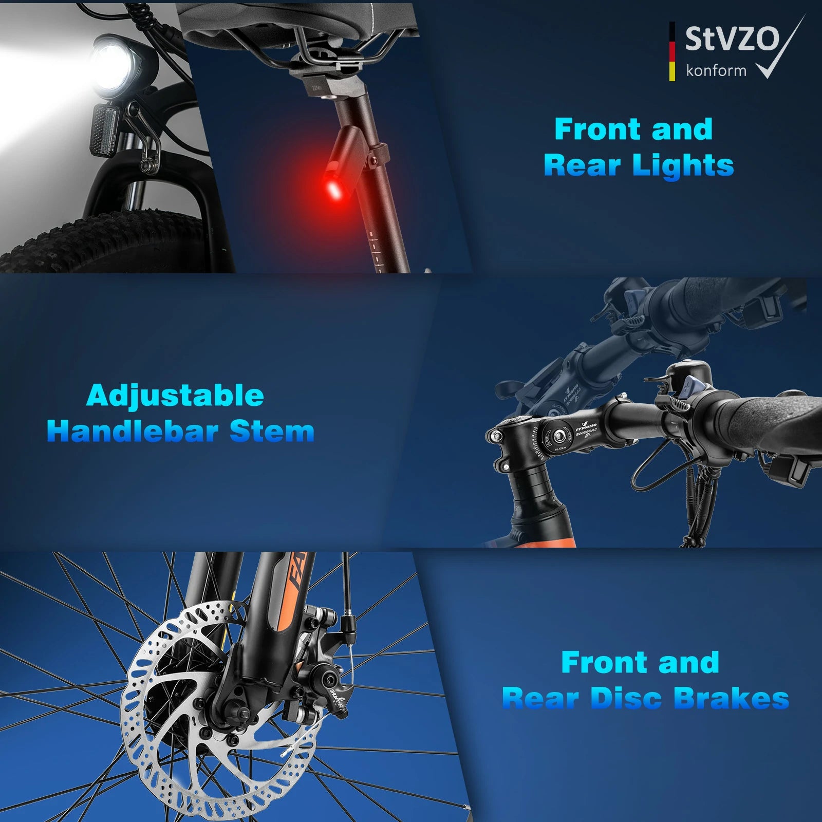 250W Motor | 36V 13Ah Battery | 25km/h Speed | 45-55km E-Range