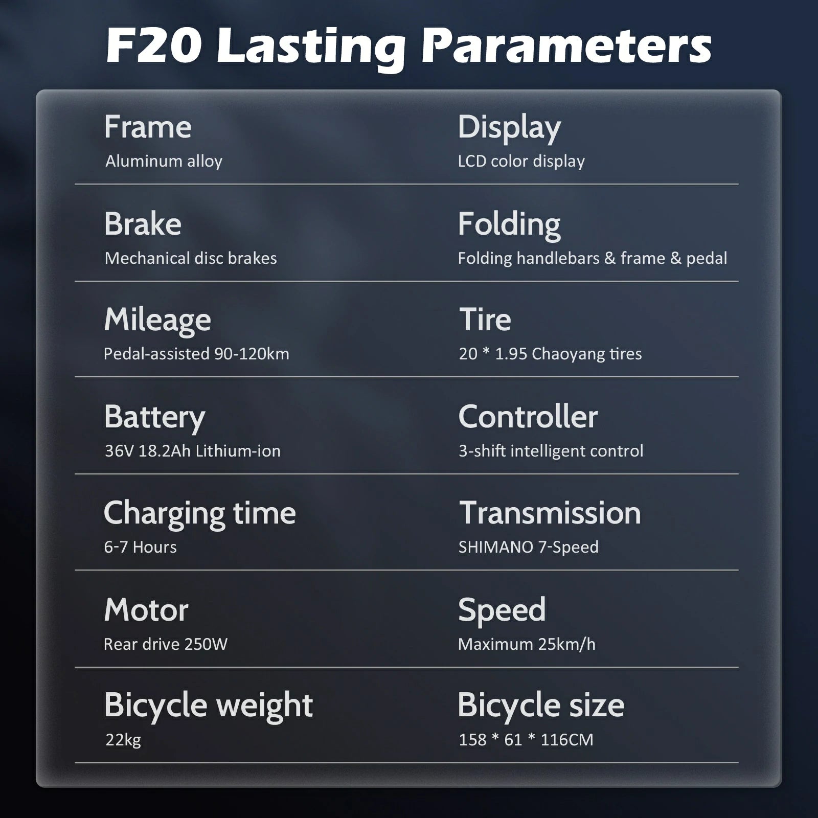 250W Motor | 36V 18.2AH Battery | 25km/h Speed | 100-130km Range