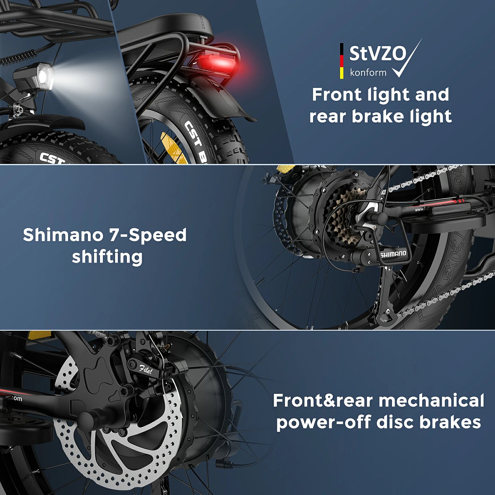 750W Motor | 48V 30Ah Battery | 25km/h Speed | 120-140km E-Range