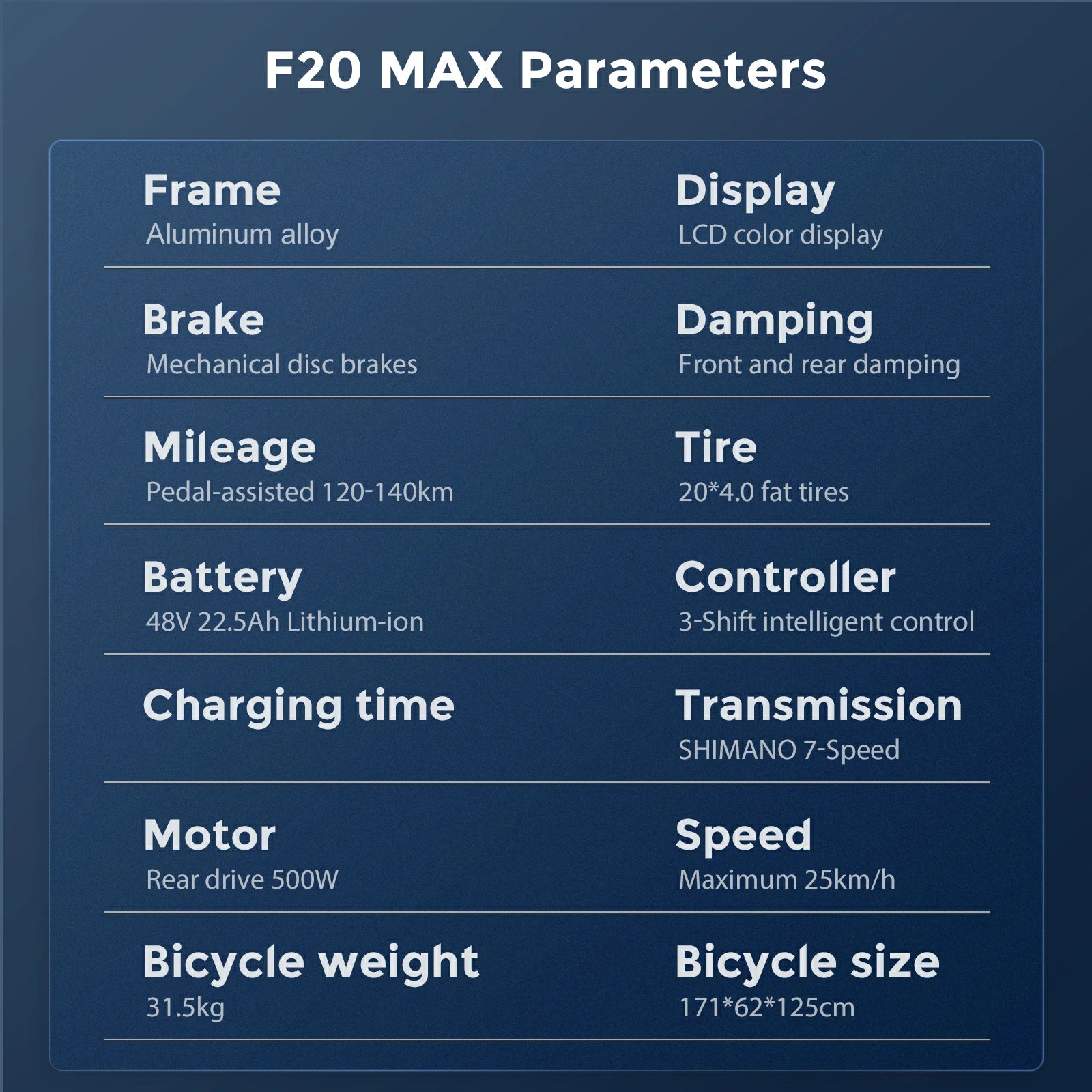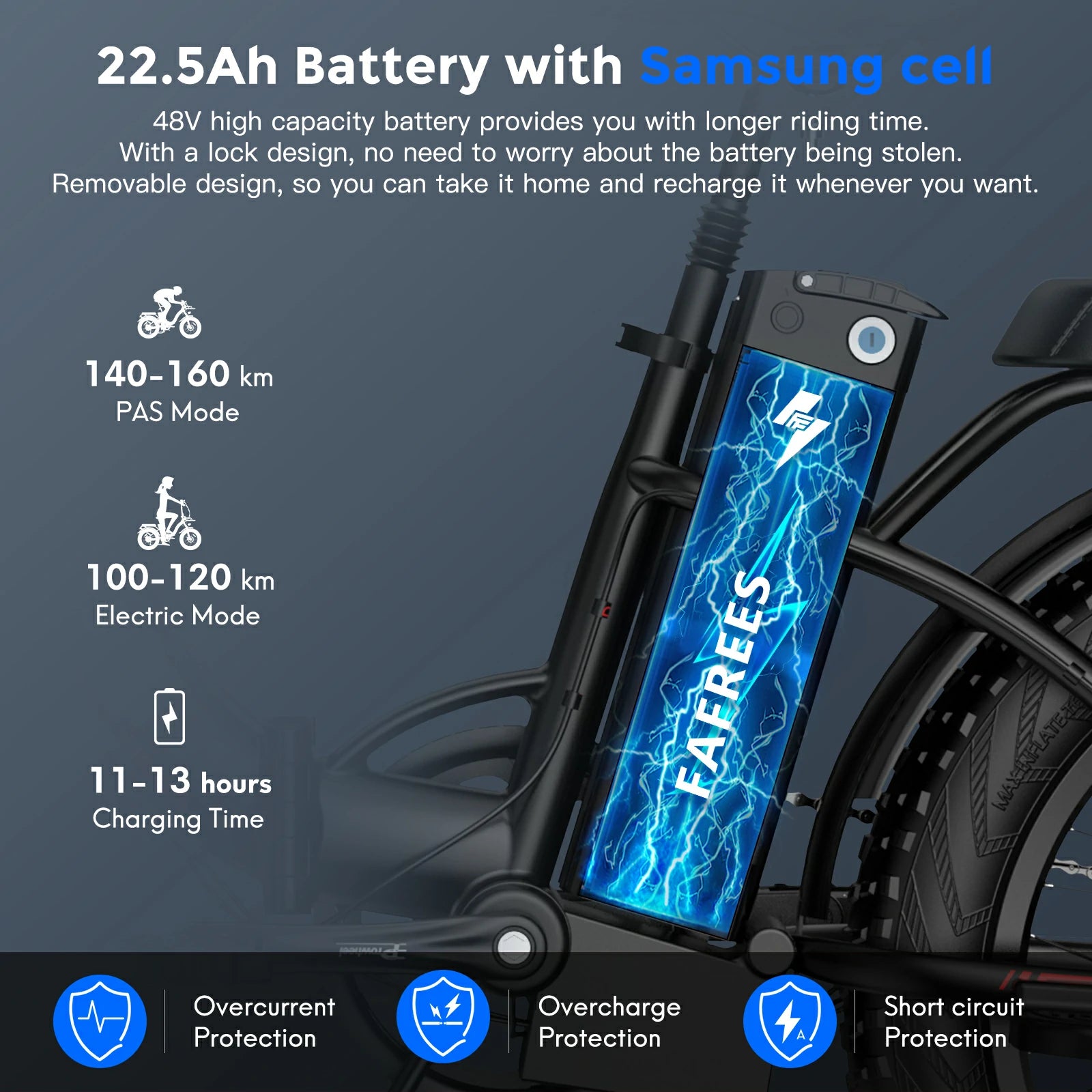 500W Motor | 48V 22.5AH Battery | 25km/h Speed | 100-120km Range