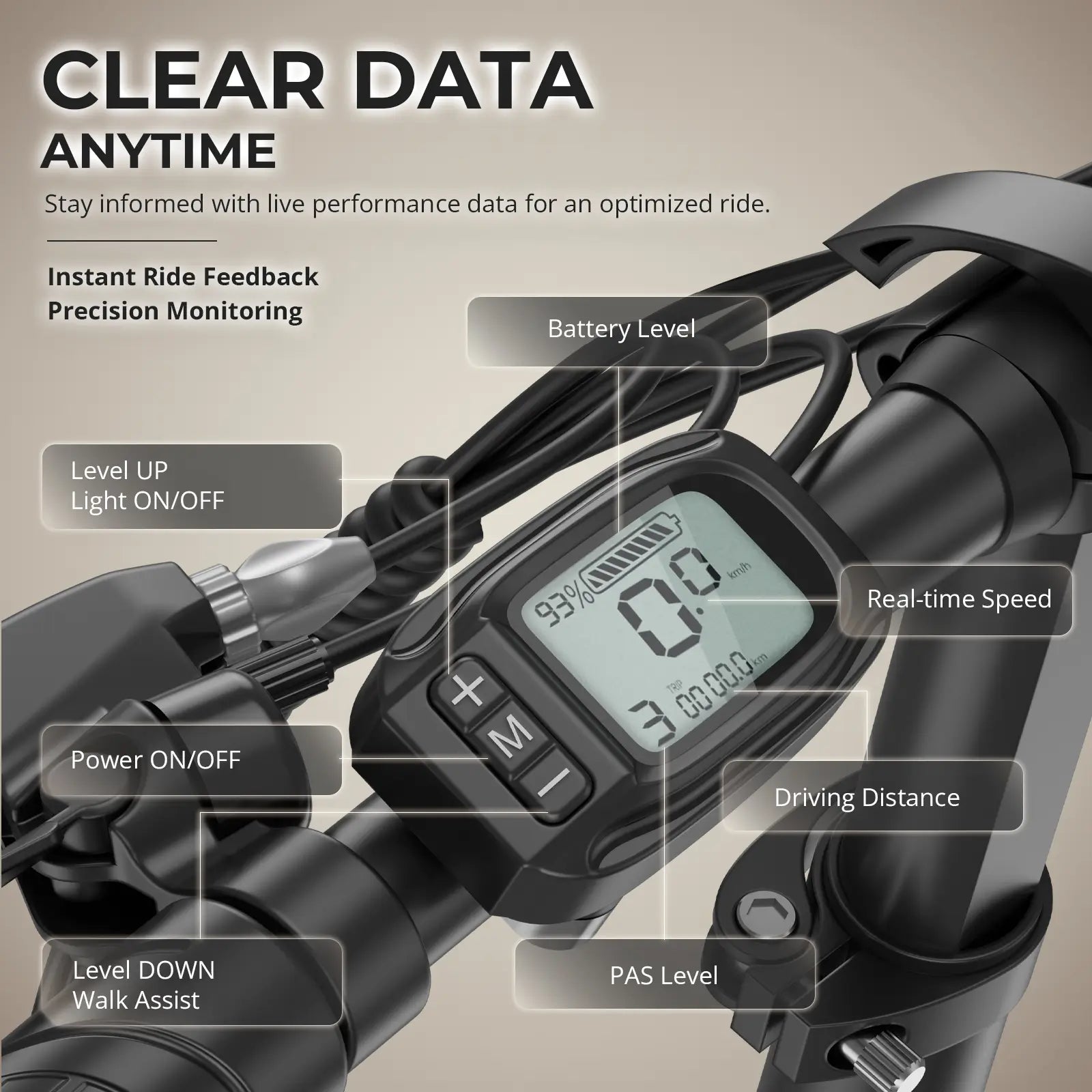 The Fafrees F20+ features a high-visibility LCD display that keeps you informed with real-time riding data for a smarter, more efficient journey. Monitor your battery level, current speed, riding distance, and PAS level at a glance, and enjoy instant feedback that helps you stay in control and optimize every ride.