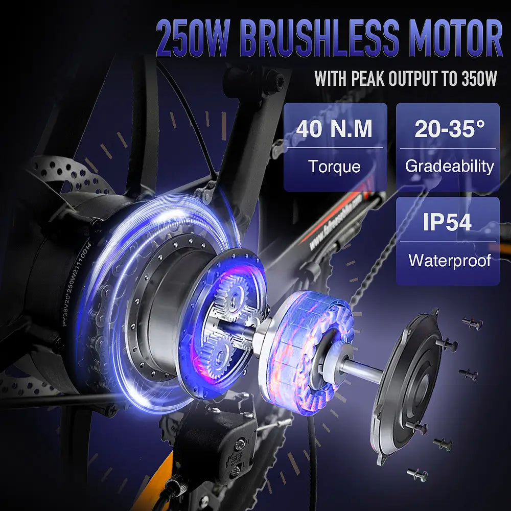 250W Motor | 36V 10Ah Battery | 25km/h Speed | 35-50km E-Range